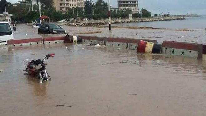وكانت طرطوس الخاضعة لنظام الأسد وميليشياته قد تعرضت الشهر الماضي لعاصفة مطرية وموجات من البرد.