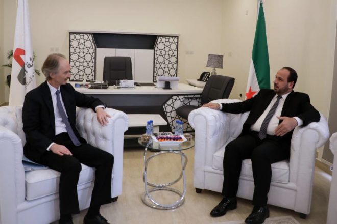 أعلنت هيئة التفاوض السورية، مساء الجمعة، أنها استقبلت المبعوث الأممي الجديد إلى سورية، غير بيدرسون، في مقرها بالعاصمة السعودية الرياض.