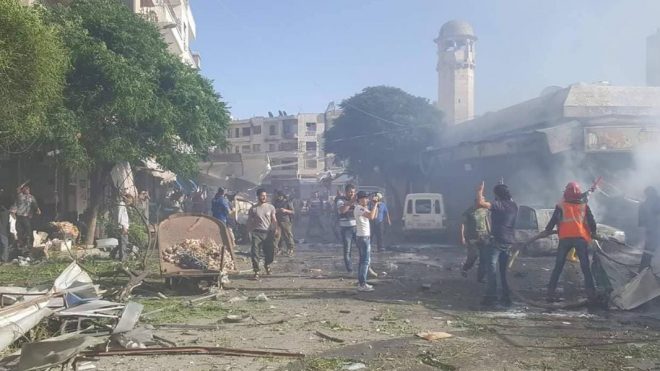 أصيب 9 أشخاص بجروح 3 منهم بحالة خطرة جراء تفجير انتحاري استهدف مبنى حكومة الإنقاذ بالقرب من مسجد الروضة وسط مدينة إدلب.