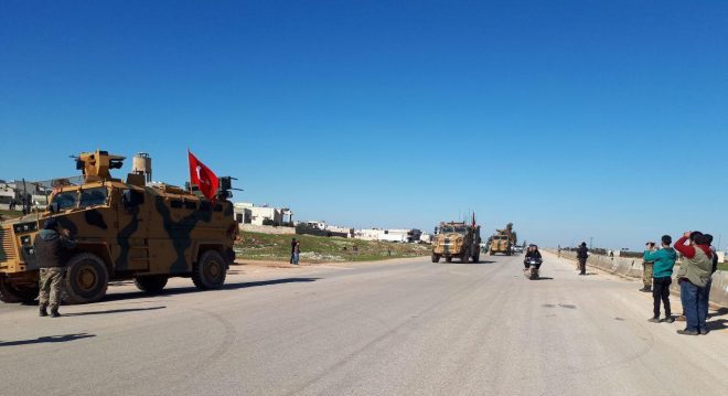 بدأ الجيش التركي، اليوم الجمعة، بتسيير دوريات مراقبة في المنطقة منزوعة السلاح في محيط محافظة إدلب، شمال غربي سورية، في خطوة وصفها وزير الدفاع التركي خلوصي أكار بأنّها “هامة” لحفظ الاستقرار وضمان وقف إطلاق النار في المنطقة.