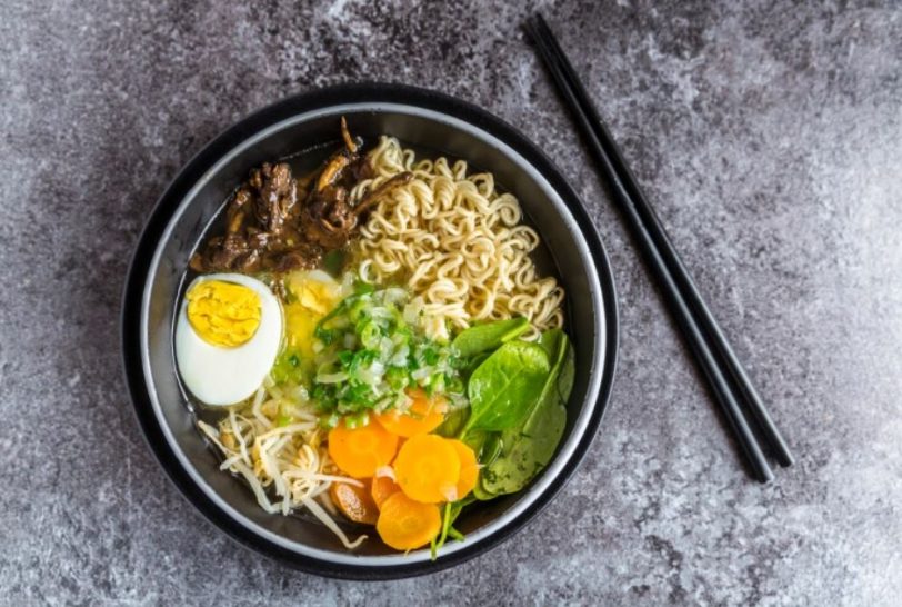 “الرامن“ (Ramen) هو حساء المعكرونة الذي ظهر لأول مرة في اليابان عام 1910، عندما قام الطهاة الصينيون بدمج “النودلز” مع المرق المالح. وكانت هذه المعكرونة المجعدة ذات لون أصفر لامع وأكثر مرونة من المعكرونة اليابانية التي كان يتم تحضيرها في ذلك الوقت، حيث تم عجنها بمياه معدنية مملوءة بكربونات الصوديوم تسمى “كانسوي” (kansui).