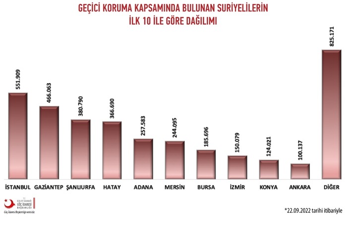 يبلغ عدد اللاجئين السوريين في تركيا ما يقارب 3.65 لاجئاً بحسب بيانات دائرة الهجرة ما يقارب ال70 بالمئة منهم من النساء والأطفال، وتحظى اسطنبول بالنصيب الأكبر من اللاجئين السوريين فسجلت في أراضيها أكثر من نصف مليون لاجئاً.