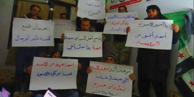 حركة أحرار الشام الإسلامية لأخذ رأي أحد الشرعيين فيها بالمظاهرة، ولم نتمكن من