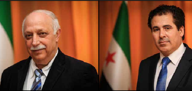 الوزيران خلال اجتماع الهيئة العامة للائتلاف الوطني السوري المنعقد منذ السبت 5
