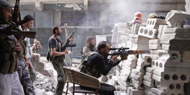 تقوم قوات المعارضة بالرد على مصدر النيران.