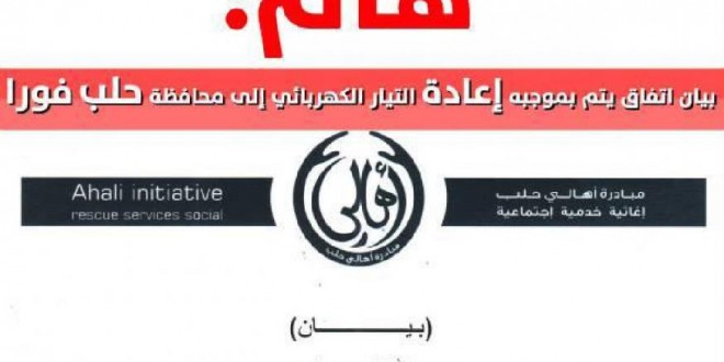تحييد الشركات والمؤسسات الخدمية كافة في محافظة حلب (كهرباء -مياه -هاتف -صرف صحي