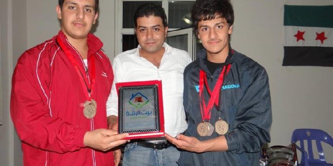 السوريين بتكريم أبطال منتخب سوريا الحر بالكاراتيه بعد تحققيهم أربع ذهبيات وفضية