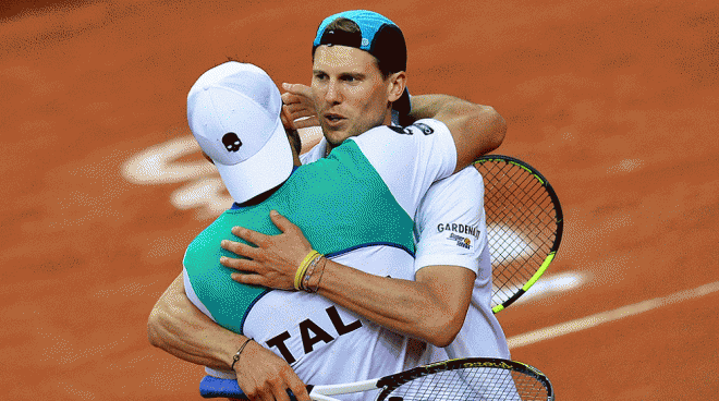 وتقام مبارتا الفردي الأخيرتان غداً الأحد فيلعب سيبي مع كيودينيلي، ولورنتسي مع لاكسونن، لكن نتيجتهما غير مؤثرة على تأهل إيطاليا التي ستقابل في ربع النهائي الأرجنتين أو بولندا.