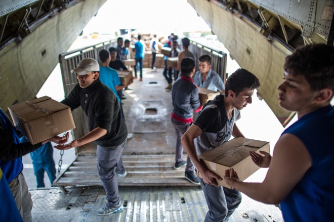 أبدت وزارة الدفاع الروسية يوم الاثنين استعدادها لاستخدام قاعدتيها العسكريتين في سوريا في عمليات توزيع مساعدات الإغاثة.