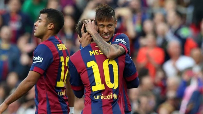 واستمر الضغط الكاتالوني ليثمر عن هدف ثالث عند الدقيقة الـ32، بعد كرة بينية رائعة من ميسي إلى نيمار داخل المنطقة تابعها قوية في الزاوية اليسرى لمرمى الضيوف.