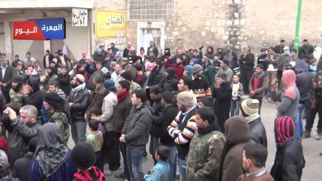 وذلك فيما يخص الأحداث التي شهدتها مدينة معرة النعمان اليوم من خروج مظاهرات ومطالبات بالإفراج عن المعتقلين، إثر الاشتباكات التي حصلت بين جبهة النصرة والفرقة 13 التابعة للجيش الحر ومقرها الرئيسي معرة النعمان/ ريف إدلب الجنوبي، حيث اقتحمت النصرة مقرات الفرقة 13 بعد اتهامها للفرقة باقتحام منازل عناصر النصرة على خلفية اعتداء عناصر من جبهة النصرة على مظاهرة تجديد العهد في البلدة.