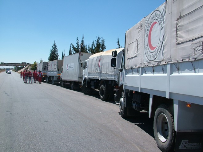 أدخلت منظمة الهلال الأحمر السوري بالتعاون مع الأمم المتحدة اليوم الخميس قافلة مكونة من 24 شاحنة محملة بالمواد الإغاثية إلى بلدتي الفوعة وكفريا في ريف إدلب المحاصرتين من قبل “المعارضة المسلحة” والخاضعتين لاتفاق هدنة بين المعارضة والأسد. ويتوجب بناء على شروط الهدنة إدخال قافلة مماثلة إلى مدينة الزبداني في ريف دمشق، والتي تُعد الطرف الثاني من الهدنة، ولمّـا يتم الإعلان عن إدخالها بعد.