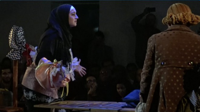 وعلى الشاطئ الفرنسي، استحضر الممثلون شخصية “طرطوف”، المنافق المتستر بستار الدين للكاتب المسرحي موليير، ليعرضوا واقعاً بشعاً لمعاناة المغتصبات السوريات اللواتي هربن من ظلم النظام ليقعن في ظلم المجتمع. و”طرطوف” على السفينة منافق شهواني خلف ستار الدين الذي يتستر فيه يحاول استدراج المغتصبة لإشباع غرائزه، لكنه وحين يكشف أمره ينظر ركاب السفينة إلى المغتصبة نظرة شك وريبة لتصرخ “227 يوم بالمعتقل اغتصبوني الشبحية… اغتصابي واغتصاب كل سورية تاج على راسكم”.