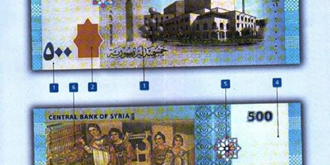 كشفت وزارة الاقتصاد في حكومة النظام عن ورقة نقدية جديدة من فئة خمسمائة ليرة، والتي يعتزم المصرف المركزي طرحها في التداول خلال الفترة القادمة، وذلك وسط جدل متصاعد حول انعكاسات طرح هذه الورقة النقدية على الاقتصاد السوري، وفي وقت تتداول أنباء عن نية المصرف طرح ورقة نقدية من فئة الألفي ليرة.