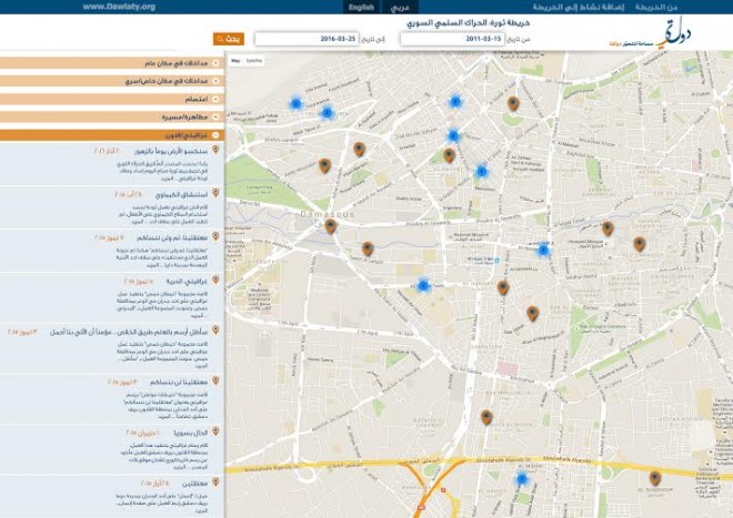 “هي منصة تفاعليه تساعد دولتي والنشطاء على توثيق النشاطات وحركات الاحتجاج المرتبطة بالحراك الثوري في سوريا الهادف لإسقاط النظام الحالي ورفض الانتهاكات من قبل المنظومات المسيطرة، منذ بداية الثورة “آذار 2011″ وحتى الوقت الحاضر، عبر ربط النشاطات بموقعها الجغرافي، باللغتين العربية والإنكليزية”.