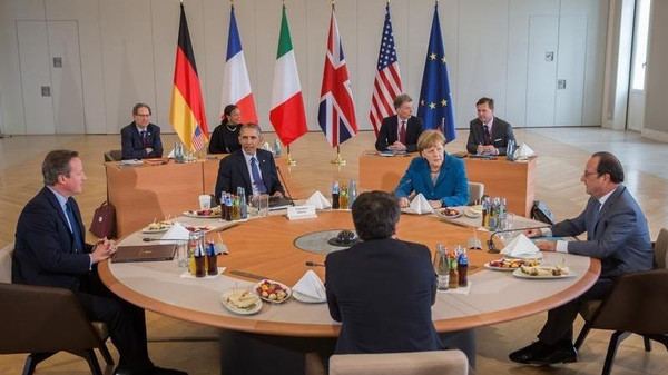 وقال البيت الأبيض، بعد اجتماع للزعماء الخمسة في هانوفر بألمانيا، إن هؤلاء “دعوا جميع الأطراف لاحترام وقف الأعمال القتالية والسماح بوصول المساعدات الإنسانية والمساهمة في نجاح مباحثات جنيف بشأن الانتقال السياسي”.