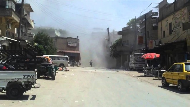 وقالت مراسل صدى الشام بإدلب: إن فرق الدفاع المدني هرعت بعد الظهر إلى منطقتي الكورنيش والحريري الواقعتين وسط البلدة، حيث سقط صاروخان على مناطق سكنية مكتظة بالمدنيين ما خلف عشرات القتلى والجرحى.