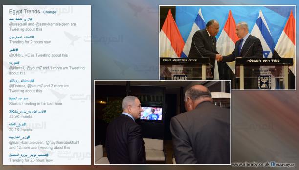 “تمثال هرتزل مؤسس الصهيونية بجوار وزير الخارجية المصري، سامح شكري. صفحة رئيس الوزراء الإسرائيلي بنيامين نتنياهو تضع صورته وشكري شعارًا لها. الحميمية في مشاهدة شكري ونتنياهو مباراة نهائي أوروبا”… كانت هذه أهم اللقطات التي لفتت أنظار رواد مواقع التواصل، في زيارة وزير خارجية النظام المصري للقدس المحتلة، ولقائه رئيس وزراء الاحتلال، في “توطئة للسلام الأكثر دفئا” الذي تمناه النظام المصري مع الصهاينة.
