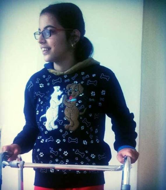 نوجين فتاة من مواليد مدينة منبج بريف حلب 1999، تعاني من شللٍ دماغي منذ ولادتها، سبّب لها خللاً في التوازن الحركي في عضلات ساقيها.