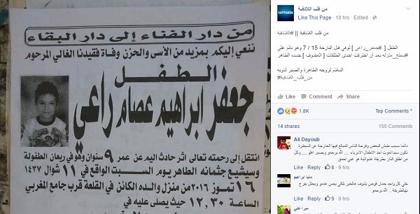 وكذلك نقلت صفحات ومواقع إخبارية معارضة خبر مقتل الطفل جعفر راعي.