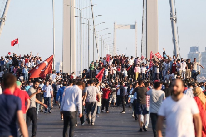 وبدأت الصحيفة باقتباس من رواية جوزيف هيللر الشهيرة «كاتش 22»: «كونك رهابيا لا يعني أنك مخطئ»، وتعلق قائلة: “في ليلة الجمعة تحقق ما كان يخشاه «أردوغان»، حيث قامت مجموعة من الجيش بالسيطرة على المطار، ووضعت دبابات على مضيق البسفور، وأعلن عن الإطاحة بالنظام التركي.