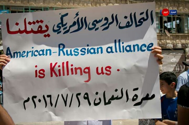 خروج مظاهرة في مدينة معرة النعمان بالريف الجنوبي بعد صلاة الجمعة نددت بقصف الطيران الروسي. يوليو 29, 2016 صدى الشام/ 2016-07-29 MUSTAFA SAMISM شارك Facebook Twitter Google +