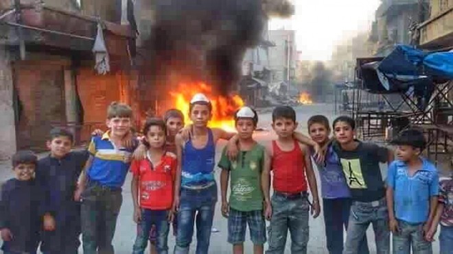 شارك أطفال في الأحياء الشرقية لمدينة حلب المحاصرة في معركة ” كسر الحصار عن حلب ” من خلال إحراقهم لإطارات السيارات في محاولة للتشويش على طائرات قوات نظام الأسد ومروحياته، بالدخان الناجم عن حرق الإطارات.