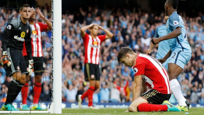 وفي مباراة آخرى حقق مانشستر سيتي مع مدربه الجديد “بيب غوارديولا” فوزًا جاء بشق الأنفس على ضيفه ساندرلاند بهدفين لهدف على ملعب الاتحاد .