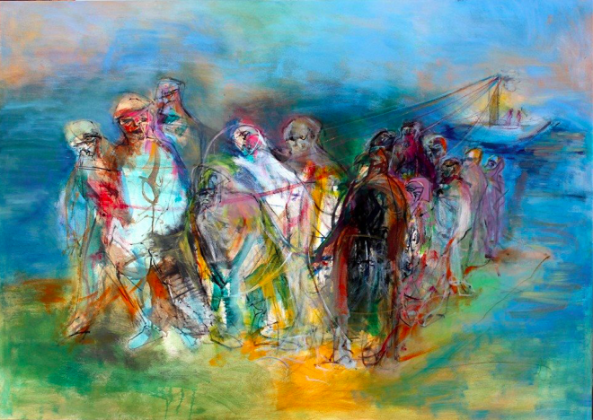 ألوان زريق مفعمة بالشجاعة وخطوطه مفعمة بالتحدي، يقول “ما زلت أبحث عن معنى أعمق في التناقضات الداخلية للإنسان. تلك التي تمنح الفن زخماً وتجعله عظيماً”.