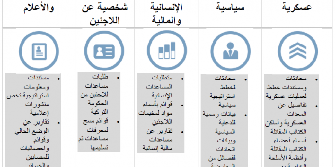وبيانات عن الناشطين الإعلاميين ومراكز اللاجئين.