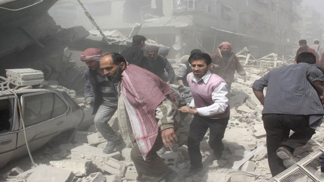 وقال الناطق باسم حركة تحرير الوطن “صهيب العلي” لـ”صدى الشام” : إنّ طيران نظام الأسد قصف بصواريخ فراغية وبراميل متفجرة الأحياء السكنية في مدينتي تلبيسة والرستن بريف حمص موقعا قتلى وجرحى.