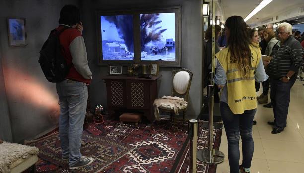 “لفهم ما يجري في سورية، لا شيء أفضل من أن تكون هناك لدقيقة”، كُتب على لافتة مرفوعة داخل ممر محطة “كارلوس بيليغريني”، بالعاصمة الأرجنتينية بوينس آيرس. في دعوة موجهة إلى المسافرين عبر المحطة، لزيارة غرفة بُنيت من وحي البيت السوري.