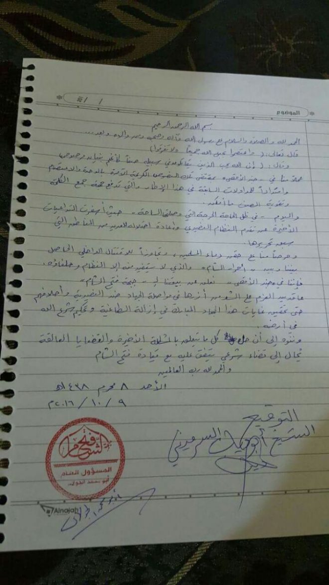جند الأقصى تنضم إلى جبهة فتح الشام. أكتوبر 9, 2016 صدى الشام/ 2016-10-09 MUSTAFA SAMISM شارك Facebook Twitter Google +