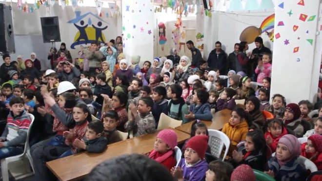 لجأت معظم المناطق المحاصرة للوحات تمثيلية على خشبة المسرح، كنوع من الترفيه للأطفال الذين حرموا طفولتهم تحت القصف، ولا ننسى أن الثورة السورية بدأت بلوحة واقعية رسمت على أيدي أطفال كتبوا على جدران مدارسهم، مر بعدها مئات الآلاف من الأطفال السوريين بأجواء الحرب والقصف والتهجير واللجوء، ولم يسلموا من موتهم بالكيماوي الخانق في الغوطة الشرقية، لتكون تلك الخشبة انعكاساً لبراءتهم وتخفيفاً من معاناتهم التي يعيشونها منذ سنين.