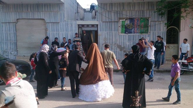 هنا، أفراح عاديّة في ظروف غير اعتياديّة. قد يلفت نظرك خبر عن عرس بكامل مراسمه واحتفالاته في مناطق تعاني أبشع ظروف الحرب في سورية.. الحصار. في بعض المناطق المحاصرة، تُقام الأفراح والأعراس بما يُتاح للأهالي من مستلزمات، فتزفّ أبناءها غير آبهة بالطوق الذي يحول بينها وبين أساسيات الحياة. يُذكر أنّ المحاصرين في هذه المناطق المحرومة من المواد الغذائية والأدوية والمواد الضرورية الأخرى، أثبتوا أنّهم أقوى من حصارهم، لا سيّما في إقامة حفلات الزفاف.