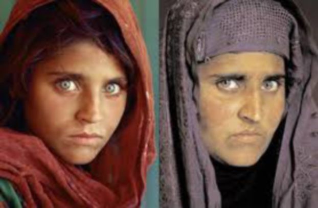 والتُقطت الصورة اللافتة لشربات غولا صاحبة العينين الخضراوين مع حجابها الأحمر في مخيم للاجئين الأفغان في باكستان بعدسة المصور الأميركي ستيف ماكوري.