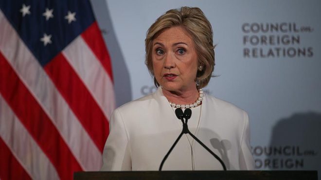 أما خارجيا، وبشكل عام، تتشابه السياسة الخارجية لكلينتون مع المسار الذي يتبعه أوباما، حيث ترفض مشاركة جنود أمريكيين في عمليات برية بالعراق وسوريا، وتؤكد على أهمية فرض منطقة آمنة محظورة الطيران شمالي سوريا.