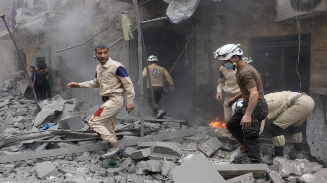 وعلى الأرض، ركزت حملة القصف المكثف التي تشنها روسيا وقوات النظام السوري على تدمير ما تبقى من بنى تحتية في مدينة حلب وريفها، بالتزامن مع محاولات تقدم إلى عمق الأحياء المحاصرة، خاصة جبهة حي الشيخ نجار، التي أحرزت فيها قوات النظام بعض التقدم، بينما أكد مقاتلو المعارضة تكبيدها خسائر كبيرة. وطاولت الحملة، في يومها السادس، مراكز الدفاع المدني، بعد أن أخرجت جميع مستشفيات المدينة عن الخدمة، ما حرم مئات المصابين جراء القصف، من تلقي العلاج، بينما عاودت قوات النظام استخدام الكلور السام في حي الصاخور ما تسبب في سقوط قتلى.