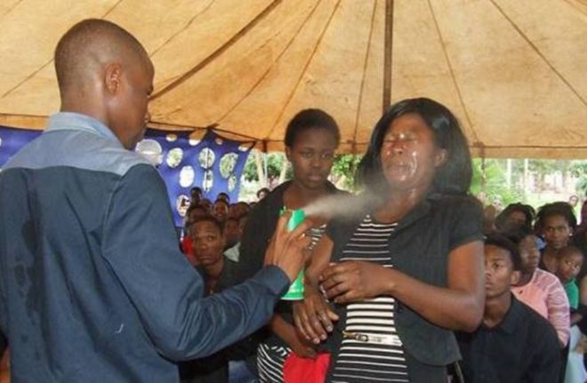 وأعلن القس ليثيبو رابالاغو نفسه نبيا، مشيرا إلى أنه يستخدم مبيدا للحشرات اسمه “دوم” (أي الهلاك) لرشّ الناس في عيونهم، إلى جانب أجزاء أخرى من أجسادهم، مدعيا أن المبيد قادر على أن يشفيهم من أمراض عدة.