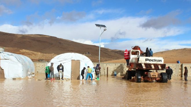 واعتبر رئيس بعثة الهلال الأحمر القطري في لبنان، عمر قاطرجي، أن “الوضع صعب، ومن الضّروري تعزيز التعاون بين المنظمات الإنسانية العاملة في عرسال، لتنسيق الاستجابة للحاجات الطارئة، إذ لا يجوز أن تتكرّر السيول والفيضانات في المخيمات مع حلول كل عاصفة”. ودعا إلى “إيجاد حلول مستدامة للحدّ من تداعيات الارتفاع الطارئ في منسوب المياه، عبر الاستثمار في قنوات تصريف المياه”.