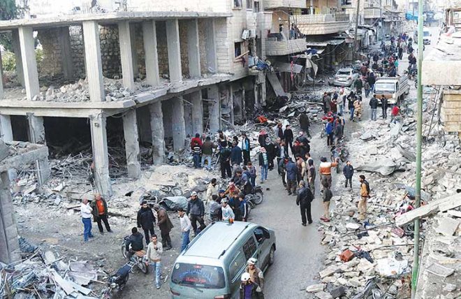 وتسببت هذه الغارات وفق المرصد بمقتل «19 شخصا على الأقل بينهم أطفال في معرة النعمان» في ريف إدلب الجنوبي. وأفاد المرصد أن بين القتلى ومعظمهم مدنيون، أربع جثث مجهولة الهوية، واستهدفت سوقا في المدينة. وأظهرت صور التقطها متطوعون من الدفاع المدني وشبان يعملون على نقل إحدى الضحايا من أمام أحد المحلات.