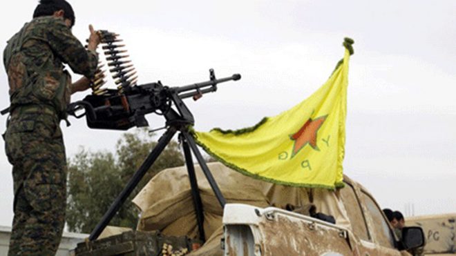 وكانت رايات “وحدات حماية الشعب” رُفعت إلى جانب رايات قوات النظام بعد معاركهما المشتركة ضد فصائل المعارضة في مدينة حلب شمالي سوريا.
