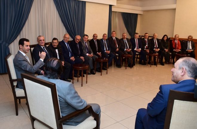 وقالت وكالة الأنباء السورية “سانا” إن الأسد استقبل الأعضاء المشاركين في اجتماع المكتب الدائم لاتحاد المحامين العرب، الذي عقد تحت عنوان “حقوق الدول في مواجهة الإرهاب”.
