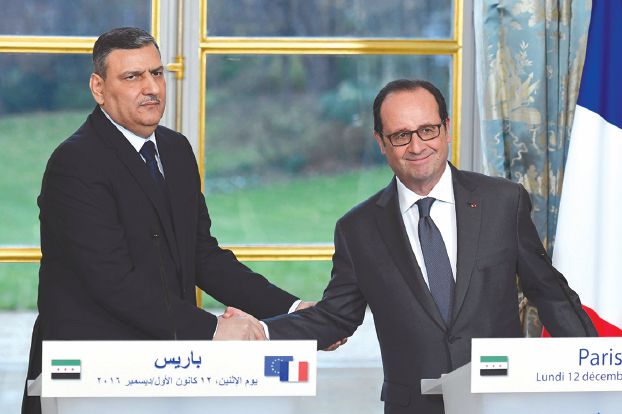 وأضاف هولاند: «أردت تقديم دعم فرنسا الكامل للمعارضة السورية الديموقراطية التي لا علاقة لها بالمنظمات الإرهابية كما (يروّج) خطاب النظام وداعمه النظام الإيراني اللذين يريدان الخلط بينهما. فالمعارضة الديموقراطية تقاوم أيضاً المنظمات الارهابية، داعش والنصرة». وتابع: «تتوجب علينا مقاومة داعش الذي يتراجع لكنه أيضاً يتقدم في تدمر. علينا أن نعمل لتحرير الرقة وعلينا تنسيق جهودنا كي تتمكن القوات على الأرض من أن تستعيد الرقة بمساعدة قواتنا الجوية». وتمسك بأن ما يجري في سورية يُعدّ جرائم حرب و «لن يكون هناك نجاة من العقاب».