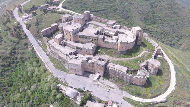 في الصالة الثانية والرئيسية من المعرض، تُعرَض بطريقة بانورامية، على خلفية موسيقى مؤثرة، أربعة أفلام تم تصويرها في مواقع سورية والعراق الأثرية بواسطة طائرات صغيرة (drones)، بتقنية 360 درجة الحديثة. وإضافة إلى فرصة زيارة هذه المواقع ومحيطها، يمنحنا كل واحد من هذه الأفلام إضاءة خاصة حول الدمار الذي لحق بها، ولكن أيضاً الجهد المبذول من أجل المحافظة عليها وإعادة ترميمها. وفي هذا السياق، نأخذ فكرة دقيقة عن عملية نهب الآثار في خورسباد، أو نطّلع على خطة إعادة تشييد موقع تدمر ورهاناتها، أو ربما على إعادة اكتشاف مسجد الأمويين من منظور أثري، أو نتجول داخل قلعة الكرك الصليبية من أجل تقييم هندستها الرائعة وصرحها الذي ما زال في حالة جيدة.