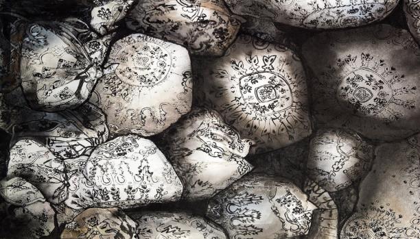 كان اثنان على الشاطئ يغسلانِ جمجمة تمزّقت برصاصةٍ أخيرة؛ وهي تنزف. حمل الاثنان الجمجمة وذهبا. تعقبتُهما إلى أن دخلا في كهف ضيّق. وجدتُ هناك امرأة تلقي بالحطب في تنور وكان فيه زوجها الجميل يصلى مثل كوز. ألقى الاثنان بالجمجمة في التنور وحين لمحانني أخذا يصرخانِ عليَّ عد إلى خارج الكهف. فخرجتُ من الكهف عائدًا إلى أهلي.