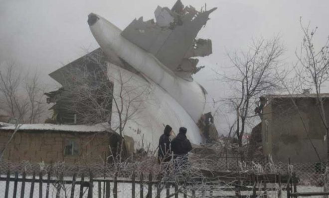 قتل 32 شخصا على الاقل بينهم ستة أطفال الاثنين في تحطم طائرة شحن فوق عدد من المساكن قرب مطار بشكيك في قرغيزستان.