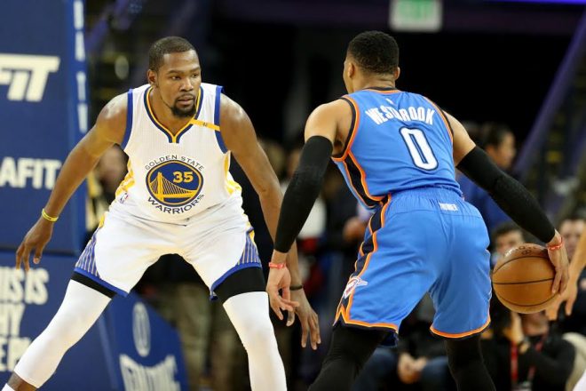 تعملق كيفن دورانت نجم غولدن ستايت ووريرز وقاده الى فوز رائع على فريقه السابق اوكلاهوما سيتي ثاندر 121-100 بتسجيله 40 نقطة ضمن دوري كرة السلة الاميركي للمحترفين.