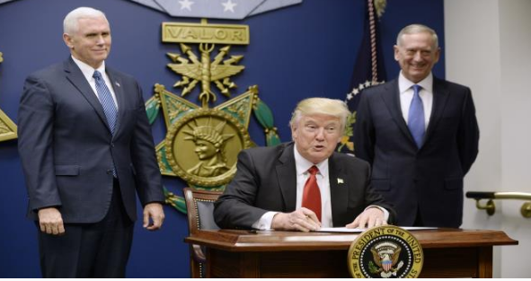 وخلال تواجده بالبنتاغون وقع الرئيس الأميركي قراراً تنفيذياً آخر يهدف لإطلاق عملية “إعادة بناء ضخمة” للقوات المسلحة الأميركية تتضمن تزويد القوة العسكرية الأولى في العالم بسفن حربية وطائرات وموارد جديدة.