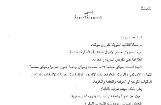 الرئيسية / سياسي / ميداني / مواد محلية مختارة / النص الكامل لمسودة دستور سوريا “الروسي” بالعربية